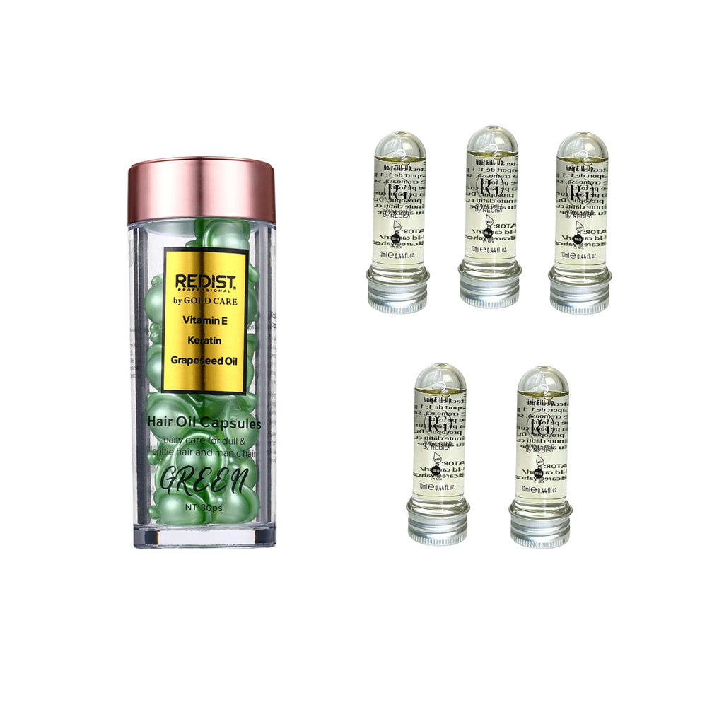 Capsule ser tratament Royal Gold by Redist + Mască de păr lichidă fiolă tratament Redist 13 ml × 5 bucăți