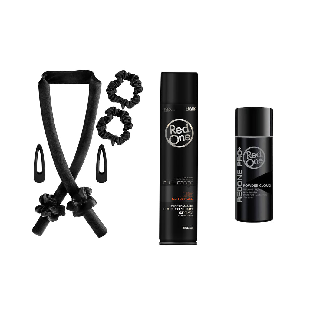 Pachet pentru bucle și volum Redist: cordon par + fixativ RedOne + Pudră pentru Volum Redone